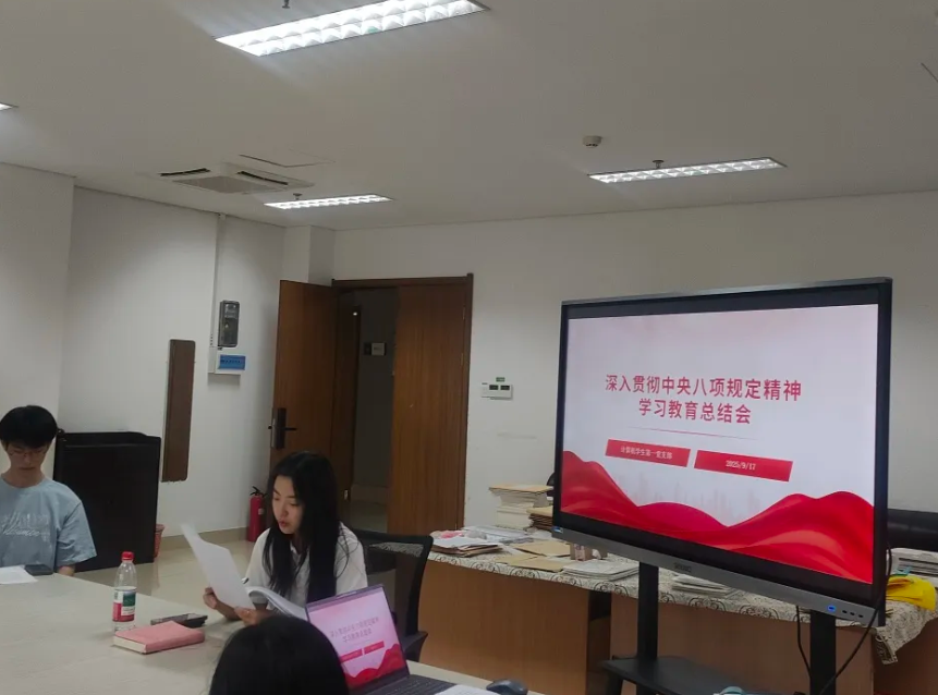 支部学习 | 计算机学生第一党支部九月主题党日活动 时间:2025-09-25 11:00:03 文章来源 :党建 浏览量:16 代码规范筑牢程序根基,纪律作风守护思想防线。计算机学生第一党支部召开深入贯彻中央八项规定精神学习教育总结会,将中央八项规定精神与计算机专业实践深度结合。 会上,支部书记领学中央八项规定精神核心要义,重点解读“求真务实、厉行节约”等要求,并结合计算机专业特点,引导党员对照规定查摆问题。党员们展开热烈的讨论,在程序开发中严守数据安全规范、在项目研讨中精简流程、在资源使用中杜绝浪费等具体场景中,明确八项规定精神如何转化为党员日常行动,为学科学习与技术创新筑牢纪律根基。