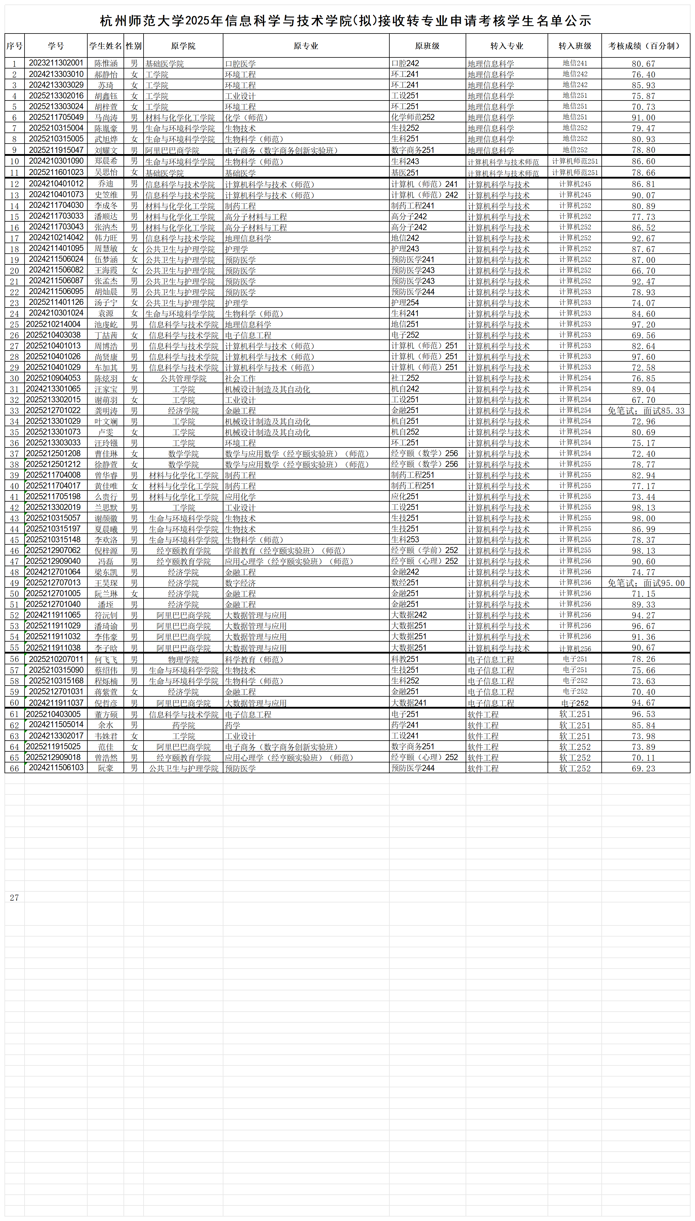 2025-2026学年第1学期全日制本科生转专业申请考核信息学院拟接收名单公示
