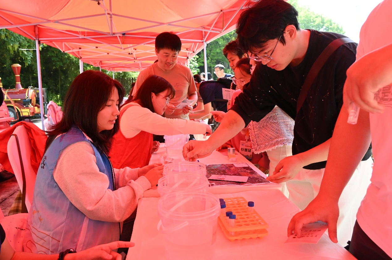 而“涟漪方程式・碧波实验室”展区,更是把专业的科学实验搬到了户外自然场景中。工作人员提前采集西溪湿地不同点位的水样,现场开展水质检测与分析演示,带领参与者直观观察水体状态、了解湿地的天然净化功能,还能亲手操作水质观测设备。看得见、摸得着的实景实验,让公众真切感受到了湿地作为“城市之肾”的重要生态价值。